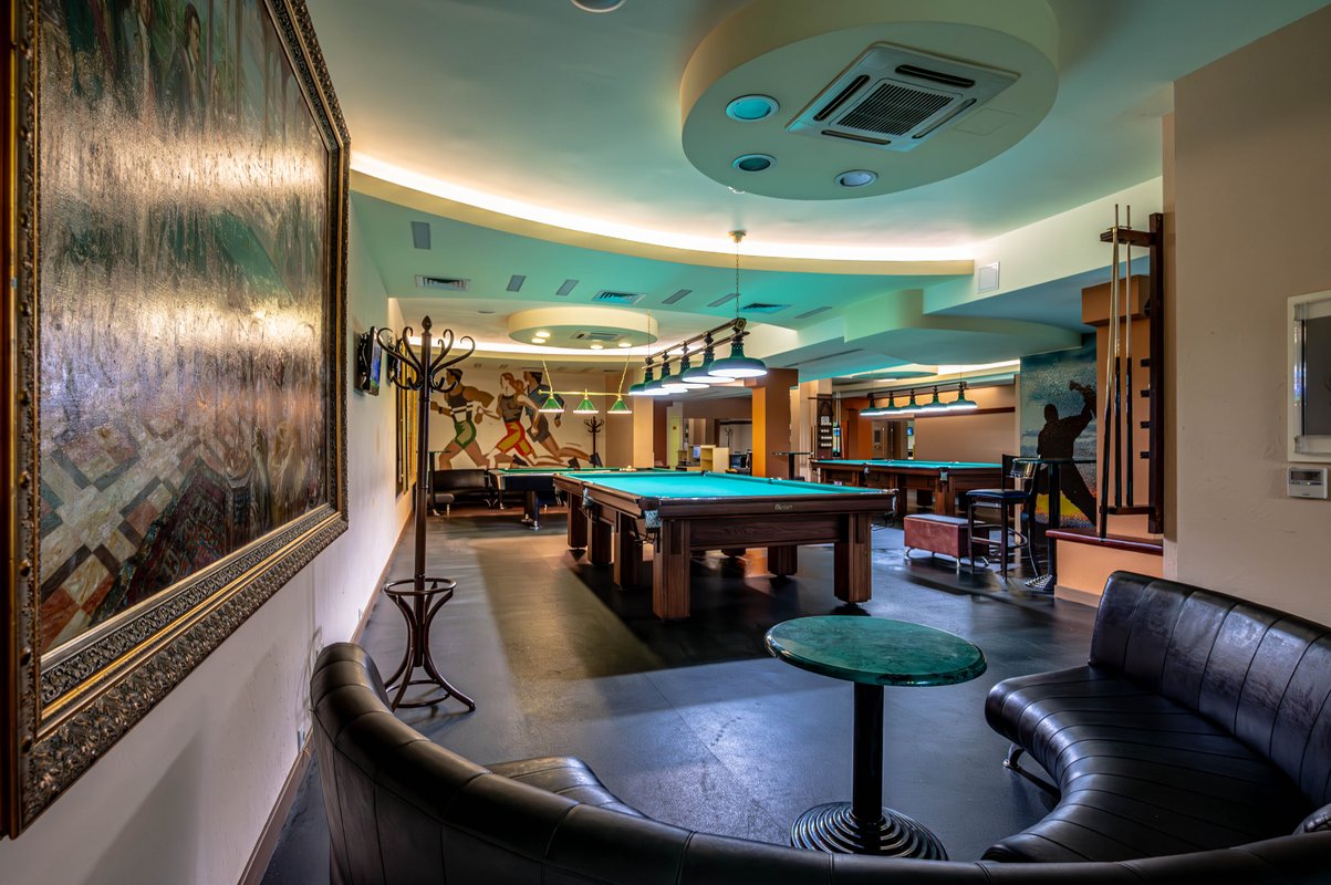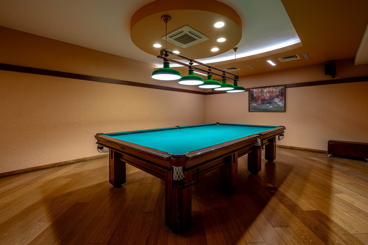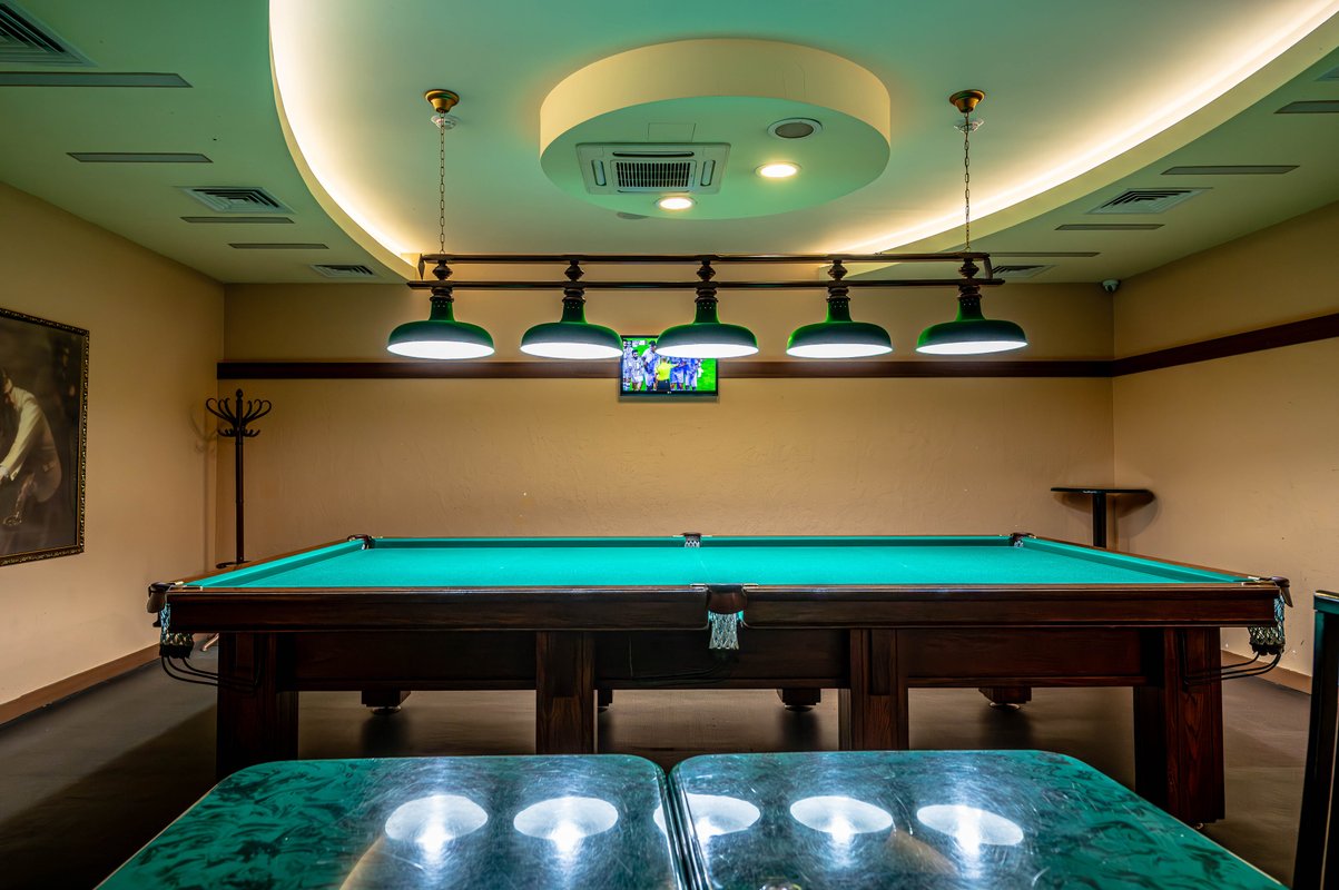 В близко расположенном к дому клубе практически всегда есть места, что очень удобно. Мы предпочитаем записываться в компании из 3-4 человек на русский бильярд, стараемся приходить раз в неделю, выбираем время ближе к открытию, в два-три часа, и играем до шести, до семи. Самое главное, что вокруг стола много места, достаточно пространства и нормальные по высоте потолки, несмотря на то, что заведение находится в подвальном помещении.